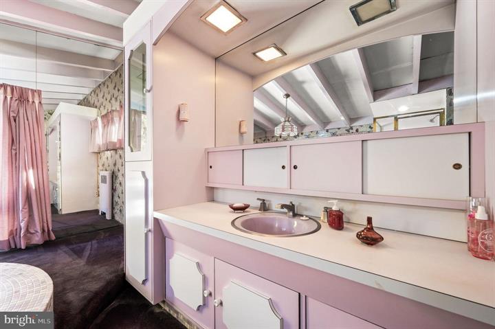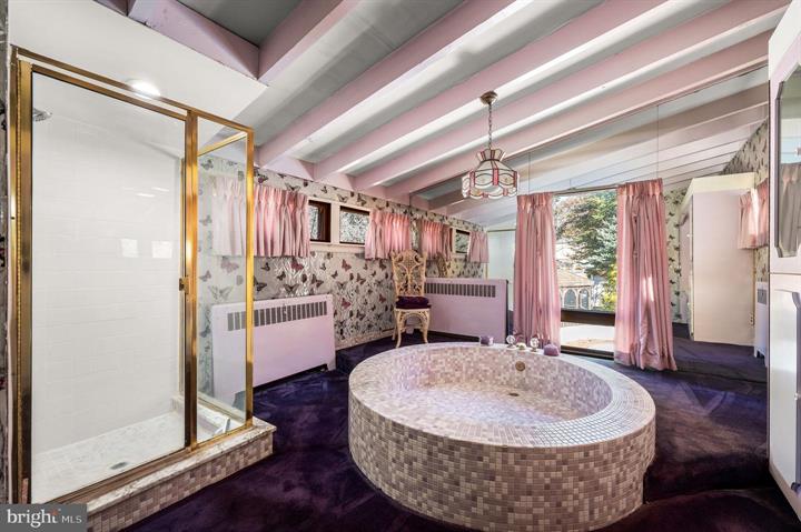 这栋房子拥有三间卧室、两个半卫生间,总面积2823平方英尺,占地约半英亩,带有上世纪中叶的建筑风格。房子保留了很多原始设计,例如主浴室中心的圆形瓷砖浴缸、木质面板吧台和石制壁炉,让人仿佛穿越回过去。